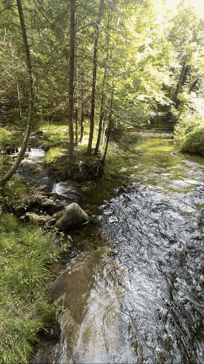 My attention drifts from the lake to the rivers at this time of year. I know it’s the shift in the color palette. I leave the intense blues and greens to move towards the browns, ambers and darks with whatever is left of the greens. I love how the leaves just begin to fall and drift down the river. I’m staking out the closest little river, watching for the salmon as they swim up out of the depths of the lake to come home to the river.